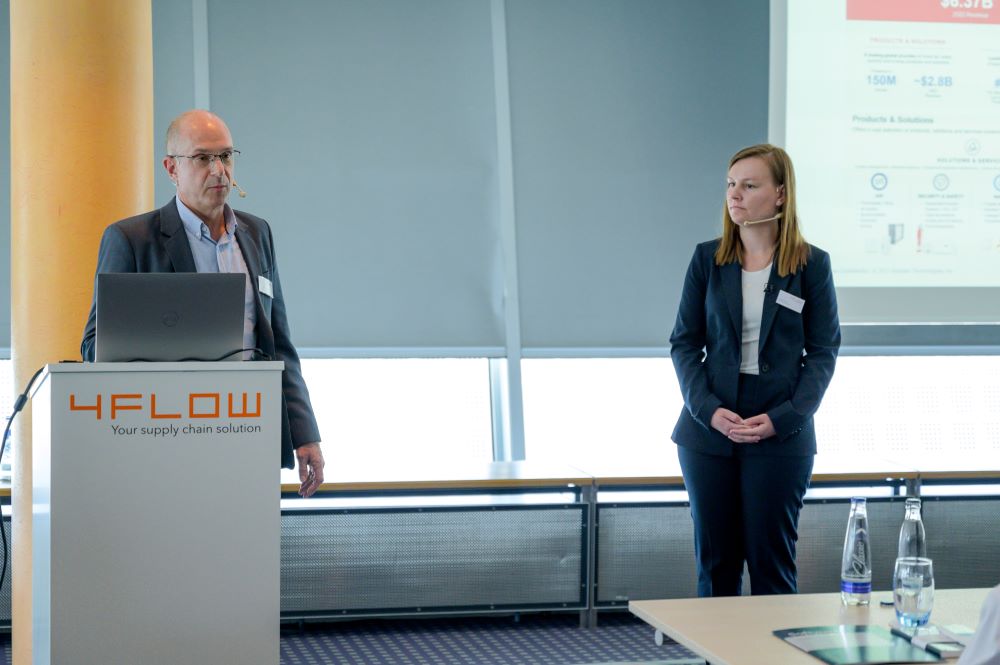Pierre-Henry Marbot, EMEA Logistics Director bei Resideo Technologies und Andrea Karáth, Projektleiterin SCE Transportplanung bei 4flow, stellten gemeinsam die Zusammenarbeit zwischen 4flow und Resideo Technologies vor. Unter dem Titel „From fragmented data to supply chain value with a 4PL“ erklärten sie, wie Resideo seine fragmentierten TMS-Daten nutzt, um kreative und wirkungsvolle Lösungen zu entwickeln.