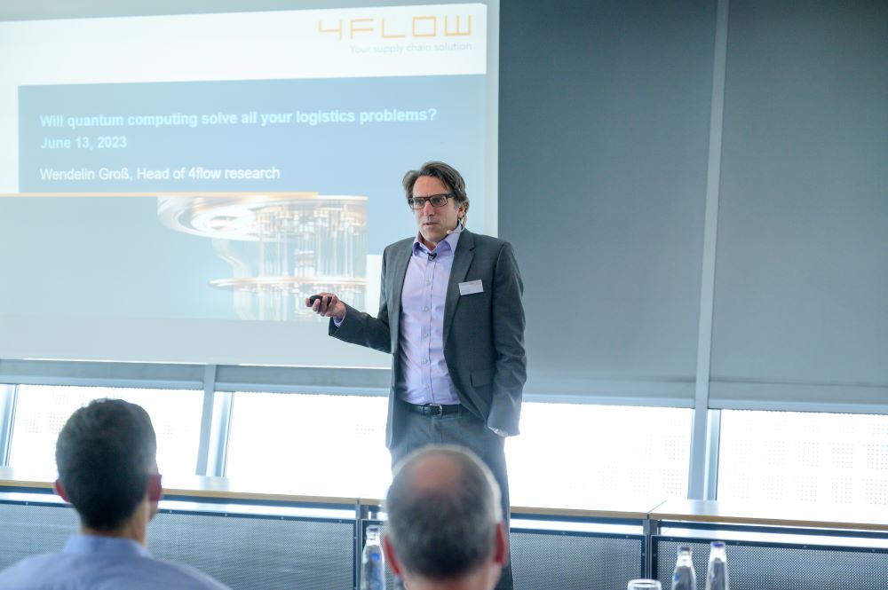 Am Nachmittag sprach Wendelin Groß, Head of 4flow research unter dem Titel „Will quantum computing solve all your logistics problems?“ über die Zukunft des Quantencomputings in der Logistikoptimierung.