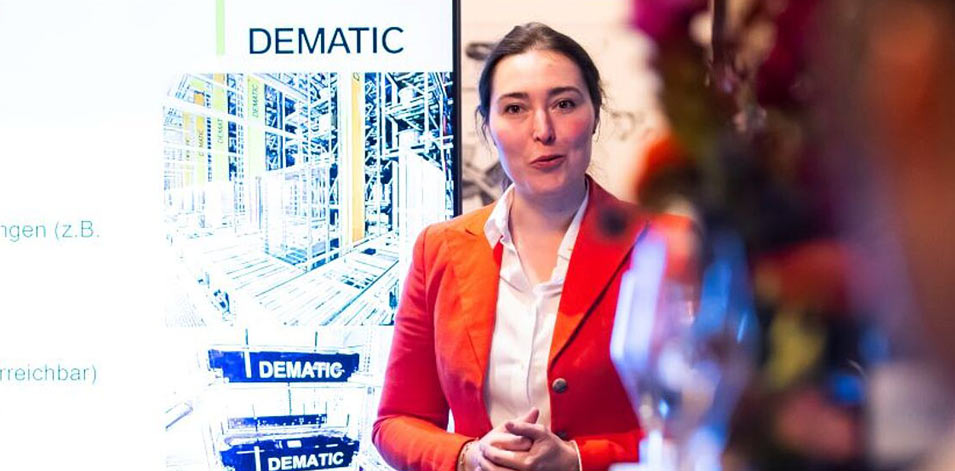 Marie-Christine Modler von Dematic bildete in ihrem Vortrag die Brücke von der Wissenschaft zur Praxis und erklärte, wie digitale Lösungen in teilweise 30 Jahre alten Anlagen eingesetzt werden können. So konnte getestet werden, wie die Umsetzung theoretischer Erfindungen in der Praxis erfolgreich sein kann. Der Mut zum Scheitern sei dabei eine wichtige Voraussetzung: „Trial and Error gehört zum Pilotieren neuer Lösungen dazu“, betonte Marie-Christine und zeigte anhand von Videos zur Anwendung von Augmented Reality und Drohnen bei Dematic, wie Innovationen in der Praxis funktionieren können.