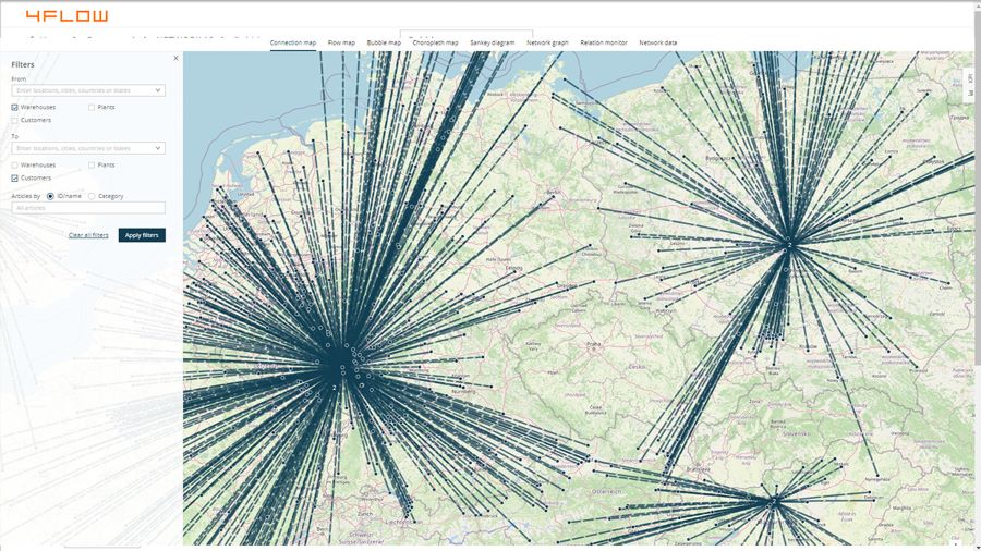 4flow VIA® bringt Ihr gesamtes Netzwerk ins Gleichgewicht und optimiert die Produktallokation in den vorhandenen Lagern, um der Kundennachfrage gerecht zu werden.