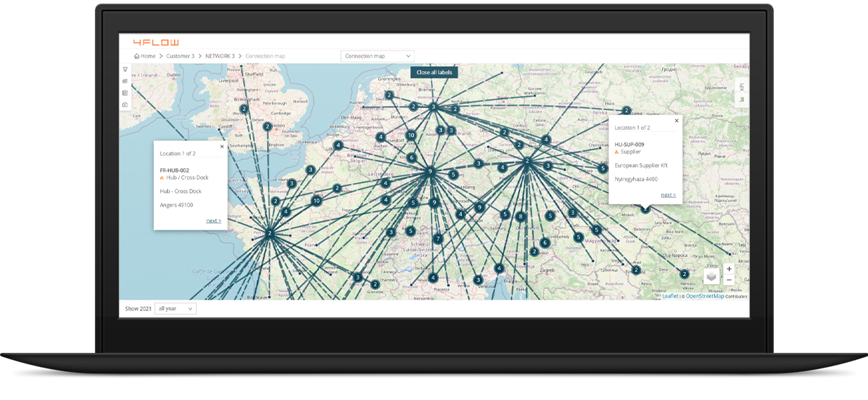In Kürze können Sie mit 4flow VIA® kostenintensive oder nicht nachhaltige Verkehrsträger identifizieren, und damit die kontinuierliche Verbesserung des Netzwerks weiter unterstützen.